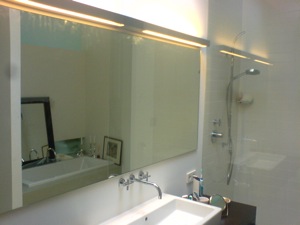 Badspiegel mit nichtsichtbarer Halterung